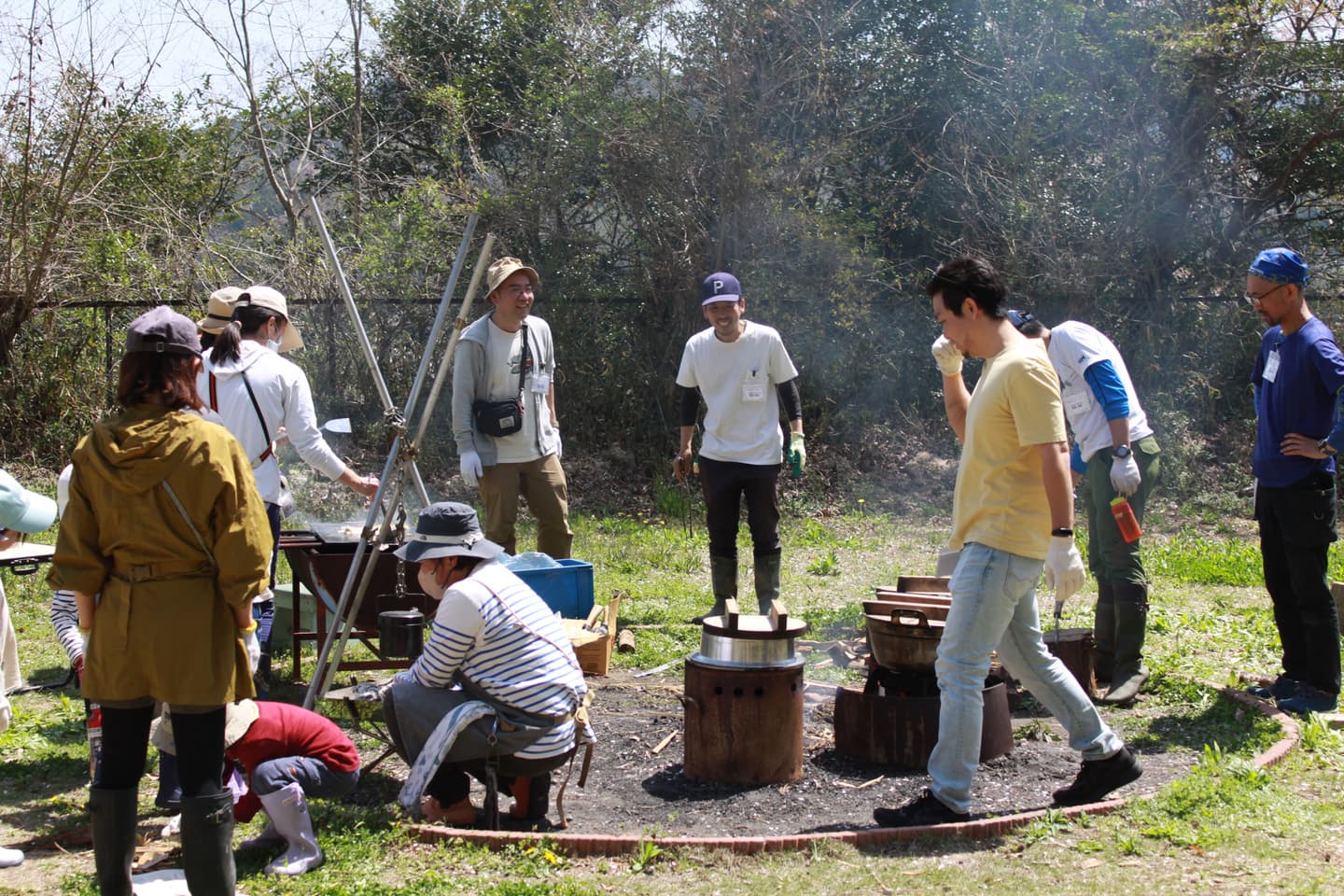 畑で採れた野菜やみんなで作ったお米やみそを使って、季節のメニューを作ります。薪で火をおこして羽釜でご飯を炊いて、時には石窯でピザを焼いたり。