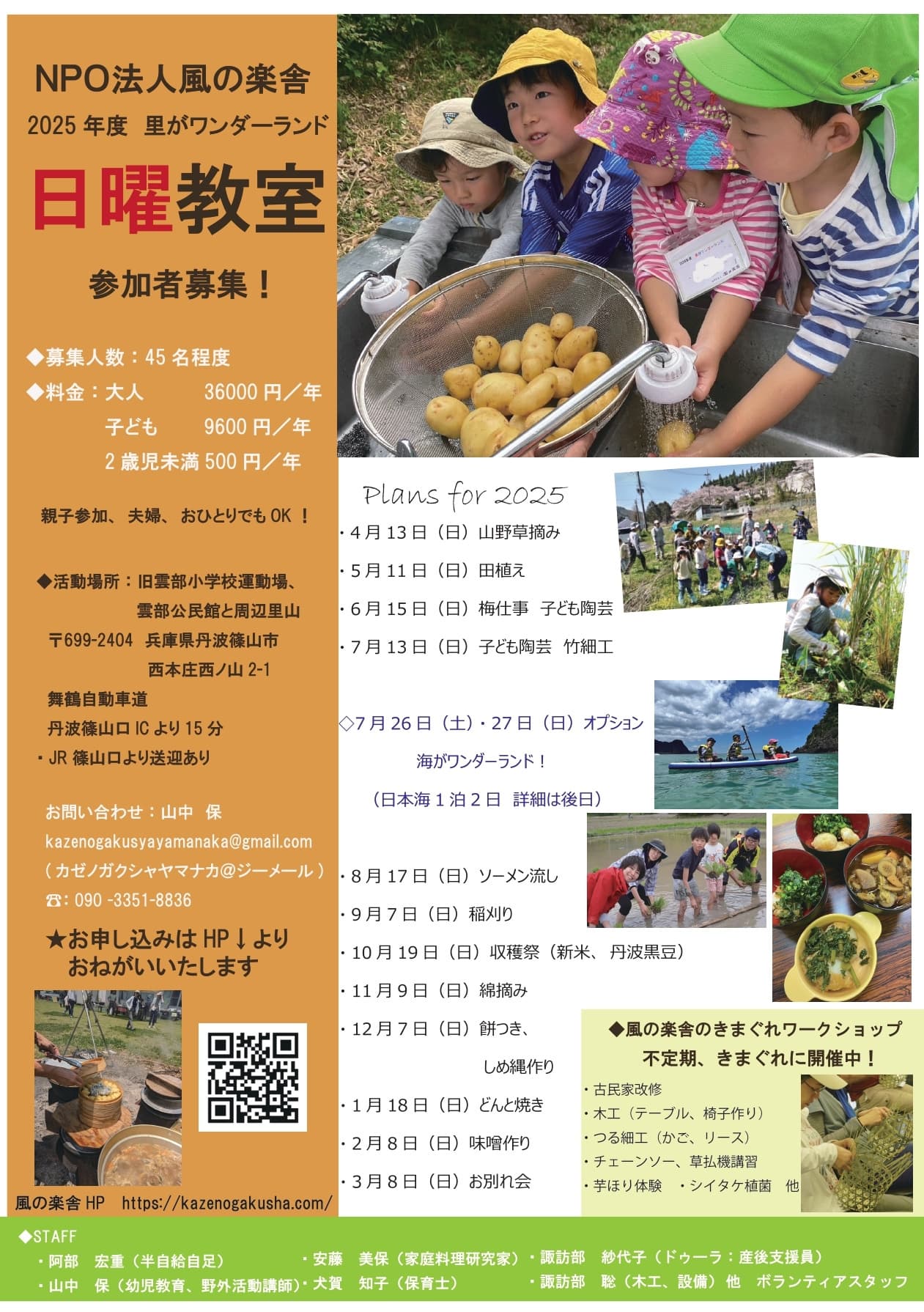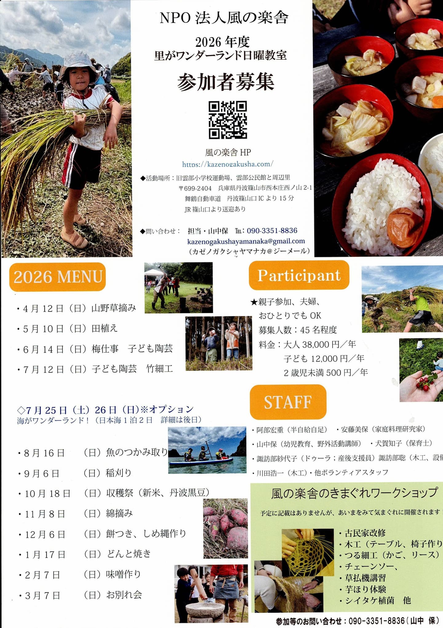 無農薬・有機農法で、米・大豆・小麦・その他季節の野菜色々を作ります。収穫したらその日の料理に使ったり、味噌や梅干し・漬物などの保存食にしたり。大地の恵みをいただきます。